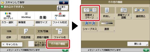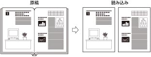 雑誌や本などの見開きの左右ページを1回の操作で別べつに読み込みます。