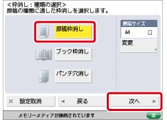 原稿枠消し読み込みできる原稿は、表示されている原稿サイズのみです。