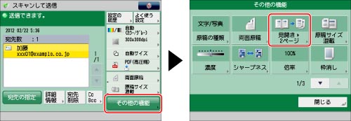 宛先を指定→[その他の機能]→[見開き