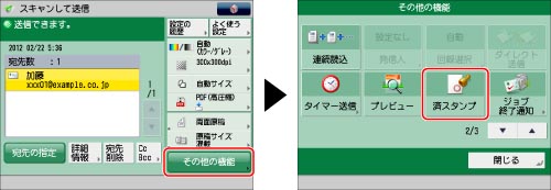 宛先を指定→[その他の機能]→[済スタンプ]を押す