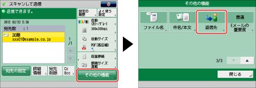返信先の宛先は、あらかじめローカルアドレス帳やワンタッチボタンに登録してください。