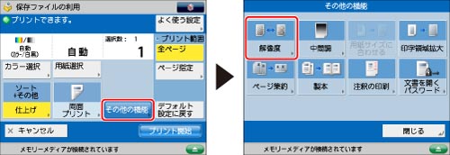 [スーパーファイン(1200dpi)]に設定するときは、用紙選択画面で用紙サイズを自動、A4、B5、A5Rのいずれかに設定してください。