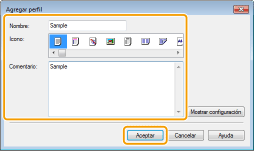 Introduzca un nombre de perfil en [Nombre], seleccione un icono y haga clic en [Aceptar].