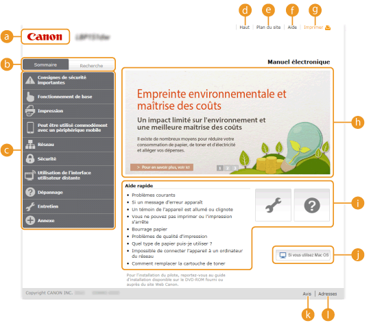 Cliquez ici pour afficher les titres de toutes les rubriques du manuel électronique.