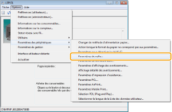 Le mode veille permet de réduire la consommation électrique de l'appareil par l'arrêt temporaire de certaines opérations internes. Vous pouvez régler l'appareil pour qu'il passe automatiquement en mode veille en cas d'inactivité pendant un certain temps. Par défaut, ce délai d'inactivité est de 1 minute. Nous vous conseillons d'utiliser ce réglage par défaut pour réduire au maximum la consommation électrique. Si vous souhaitez modifier le délai d'inactivité précédant le passage en mode veille, suivez la procédure suivante dans la Fenêtre d'état de l'imprimante.
