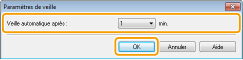 Spécifiez la durée du délai précédant le passage en mode veille. Vous pouvez sélectionner un délai allant de 1 à 30 minutes.
