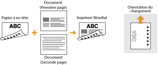 Cette section explique comment charger du papier à en-tête dans la bonne orientation et avec la bonne face tournée vers le haut. Pour une description complète de la procédure de chargement du papier dans la cassette ou le bac multifonctions, reportez-vous à la section suivante.
