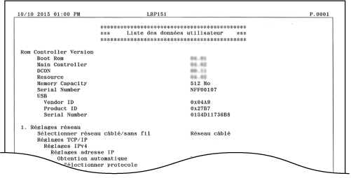 [Liste des données utilisateur] ou [Liste des polices PCL].