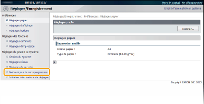 La machine ne peut pas imprimer ni effectuer aucune autre opération lorsque le micro programme est en cours de mises à jour. La machine ne peut pas non plus entrer en mode veille.