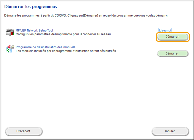 Après avoir remplacé la connexion par réseau filaire par une connexion par réseau sans filVous devez désinstaller le pilote d'imprimante en place, puis le réinstaller. Pour en savoir davantage, consultez le Manuel d'installation du pilote d'imprimante.