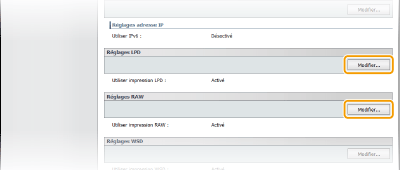 Cochez la case pour imprimer à l'aide du protocole LPD. Décochez la case si vous ne souhaitez pas utiliser le protocole LPD. [Utiliser impression RAW]