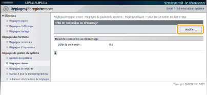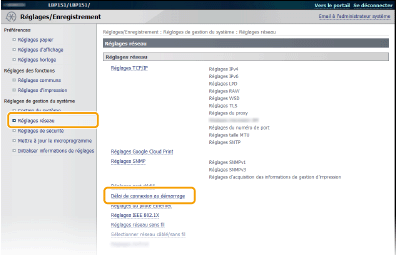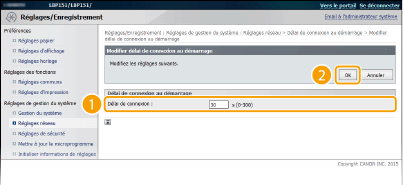 Saisissez le délai d'attente avant l'établissement de la communication avec le réseau, puis cliquez sur [OK].