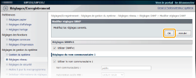 S'il est inutile de modifier les réglages SNMPv1, passez à l'étape suivante.