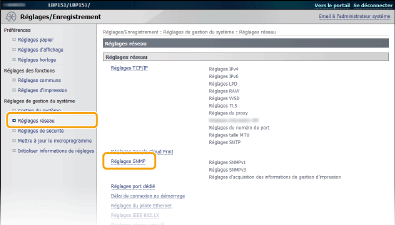 Grâce à SNMPv3, vous pouvez mettre en œuvre une gestion des périphériques réseau protégée par de puissantes fonctions de sécurité. Utilisez l'interface utilisateur distante pour effectuer les réglages après avoir activé le mode TLS (