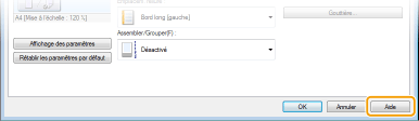 Vous pouvez utiliser les pilotes d'imprimante PCL6 et UFRII LT. Les paramètres d'impression disponibles varient en fonction du pilote d'imprimante. Pour plus d'informations, cliquez sur [Aide] sur chaque écran du pilote d'imprimante.