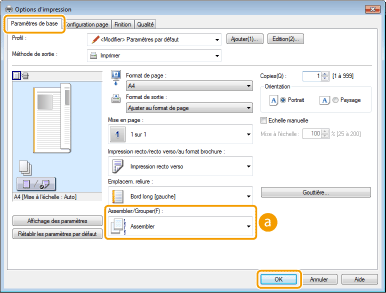 Si vous sélectionnez [Désactivé], le tri des pages imprimées dépend du réglage que vous définissez dans l'application.