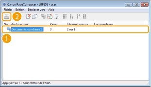 Le logiciel Canon PageComposer permet de combiner plusieurs documents en une seule tâche d'impression et de l'imprimer conformément aux réglages d'impression sélectionnés. Par exemple, cette fonction permet de combiner des documents issus de différentes applications et d'imprimer toutes les pages au même format de papier.