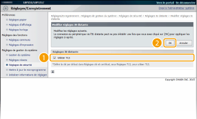 Activation de communications cryptées TLS pour l'interface utilisateur distante