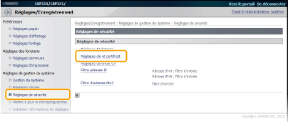 Vous ne pouvez pas utiliser la paire de clés générées par la demande de signature de certificat (CSR) tant que le certificat n'est pas enregistré. Une fois que l'autorité de certification a émis le certificat numérique, enregistrez-le selon la procédure indiquée ci-dessous.