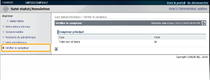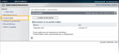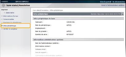 L'état de l'imprimante de la liste des données utilisateur que vous avez spécifié dans la fenêtre du statut de l'imprimante à imprimer ne s'affiche pas dans l'interface utilisateur distante.