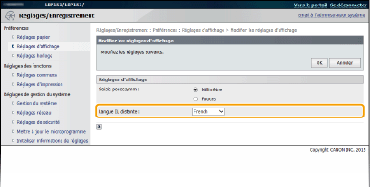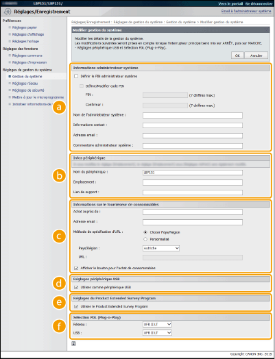 Menu [Réglages de gestion du système]