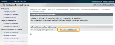 Cliquez sur le lien de l'URL affichée pour [Lien vers la page d'enregistrement ].