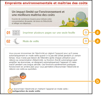 Affichage des titres des rubriques. Cliquez sur un titre pour afficher la page de la rubrique correspondante.