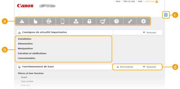 Cliquez ici pour afficher les titres de toutes les rubriques du manuel électronique.