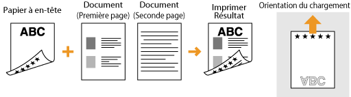 Cette section explique comment charger du papier à en-tête dans la bonne orientation et avec la bonne face tournée vers le haut. Pour une description complète de la procédure de chargement du papier dans la cassette ou le bac multifonctions, reportez-vous à la section suivante.