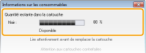 Vérifier la quantité de toner restante dans [Quantité restante dans la cartouche]