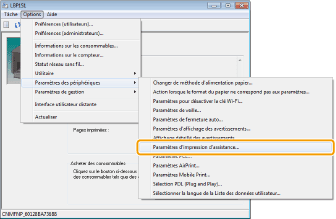 Toujours imprimer en mode Silencieux![]() Vous pouvez régler l'appareil pour que l'impression soit toujours exécutée en mode Silencieux. Modifiez le réglage de l'appareil dans la fenêtre d'état de l'imprimante.