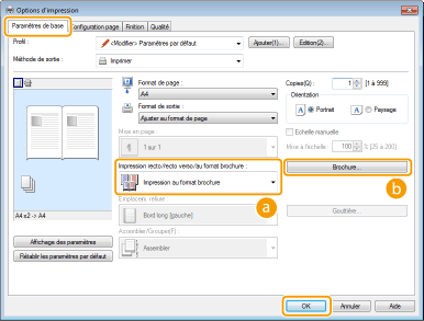 Cliquez sur [Brochure] pour spécifier paramètres détailles en cas de besoin