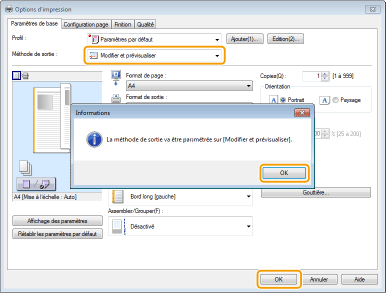 Sélectionnez [Modifier et prévisualiser] dans [Méthode de sortie].