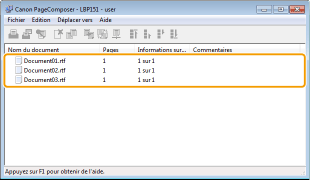 Le logiciel Canon PageComposer permet de combiner plusieurs documents en une seule tâche d'impression et de l'imprimer conformément aux réglages d'impression sélectionnés. Par exemple, cette fonction permet de combiner des documents issus de différentes applications et d'imprimer toutes les pages au même format de papier.