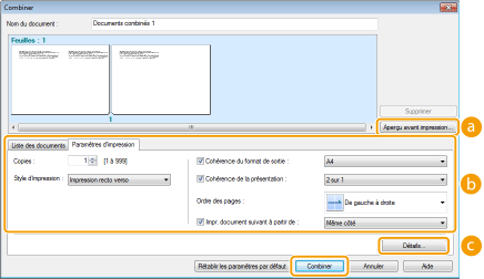 Modifiez les réglages si nécessaire et cliquez sur [Combiner].