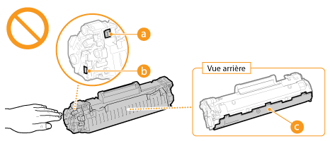 Manipulation de la cartouche de tonerVeillez à utiliser la monture pour tenir la cartouche de toner.