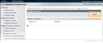 Cliquez sur [Réglages de sécurité ]  [Réglages IU distante].