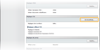 Cliquez sur [Clé et certificat] dans [Réglages TLS].