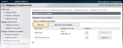 Cliquez sur [Nom de clé ] ou [Certificat] pour que le certificat soit enregistré.