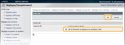 Sélectionnez [Clé et demande de signature de certificat (CSR)] et cliquez sur [OK].