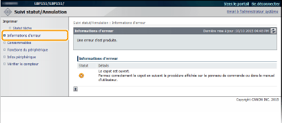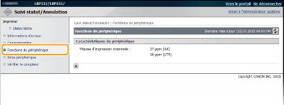 L'état de l'imprimante de la liste des données utilisateur que vous avez spécifié dans la fenêtre du statut de l'imprimante à imprimer ne s'affiche pas dans l'interface utilisateur distante.