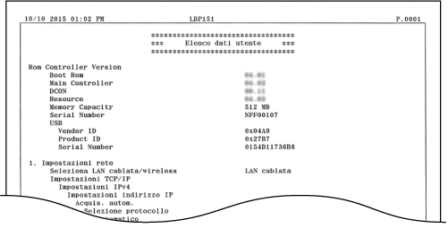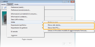 (Carta) della macchina per stampare l'Elenco dati utente. Visualizzazione delle impostazioni di reteImpostazione della lingua di stampa inNella menu [Opzioni] della Finestra stato stampante