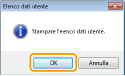 [Impostazioni periferica] finestra di dialogo [Selezionare la lingua per l'elenco dati utente], è possibile specificare la lingua da utilizzare per stampare l'Elenco dati utente. |