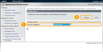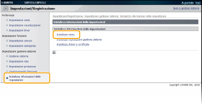 Fare clic su [Inizializza informazioni delle impostazioni]