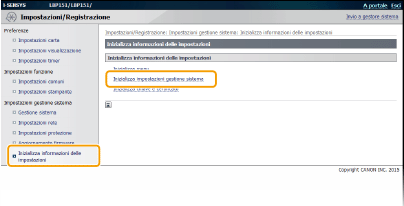 Fare clic su [Inizializza informazioni delle impostazioni]