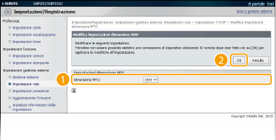 Fare clic su [Modifica] in [Impostazioni dimensione MTU].