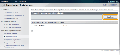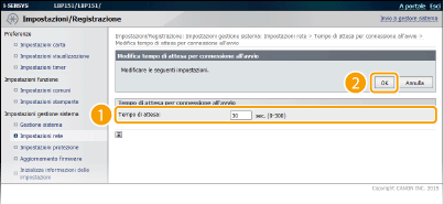Inserire il tempo di attesa prima dell'inizio della comunicazione con la rete, quindi fare clic su [OK].