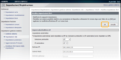 Fare clic su [Modifica] in [Impostazioni IPv4].