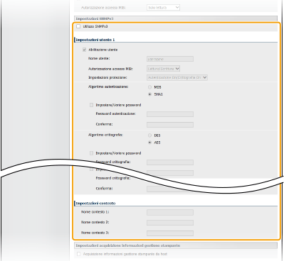 Selezionare la casella di controllo per abilitare SNMPv3. È possibile specificare le altre impostazioni SNMPv3 solo quando questa casella di controllo è selezionata.