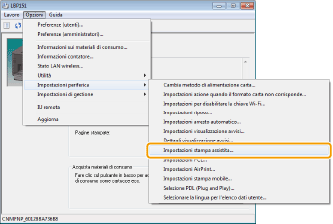 Stampa sempre in modalità silenziosa![]() È possibile impostare la macchina in modo che stampi sempre in modalità silenziosa. Modificare le impostazioni della macchina nella Finestra stato stampante.